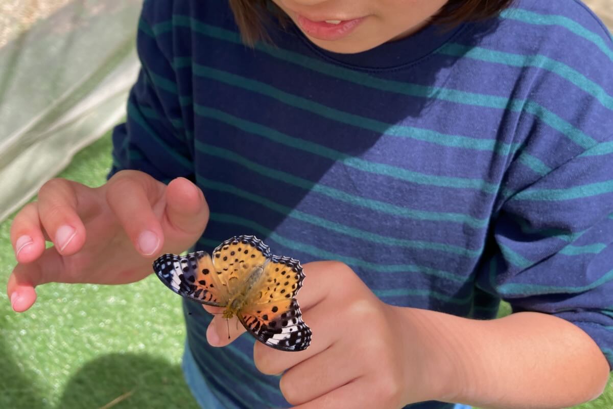 片方だけを持つと、暴れます。翅をもつときは4枚。しっぽを持つと噛まれるよ!