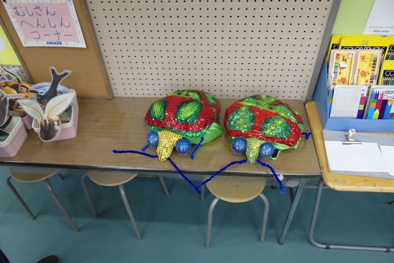 室内で、あまり飛ばない虫をさわるコーナーです。