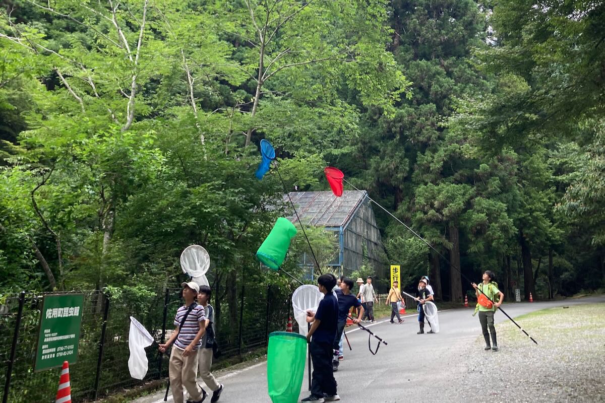 お外へ出て、がっつり虫とりしましょう。虫あみ、虫かごは、自由に使ってください。使ったら元に戻してね。