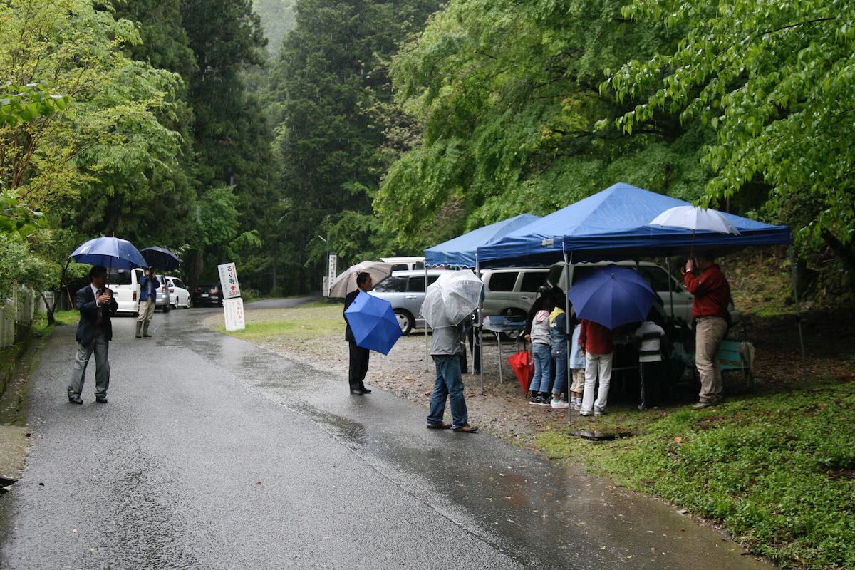 「兵庫県立人と自然の博物館と佐用町昆虫館は、生物多様性の保全、環境学習・生涯学習の推進、地域づくりに寄与するため、この協定を締結し、互いの交流・連携を広く進めるものとする。」として、雨脚が強まる中、佐用町昆虫館にて協定書の調印式が行われました。 (左から、佐用町庵逧町長、人と自然の博物館中瀬副館長、佐用町昆虫館内藤館長)