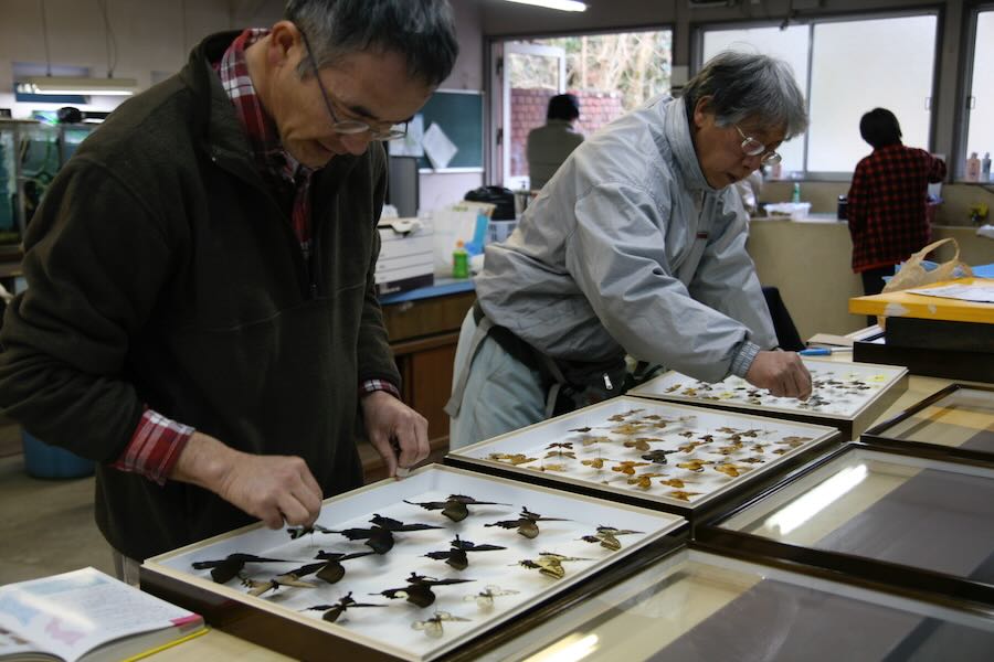 平山コレクションは県に引き取られ、標本の一部は「ひょうご環境体験館」に展示されることになりました。兵庫県環境学習課による作業。