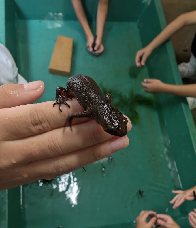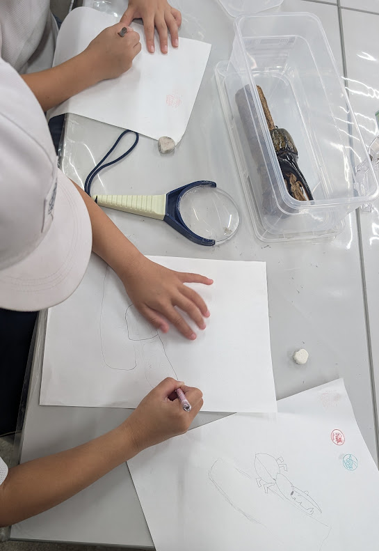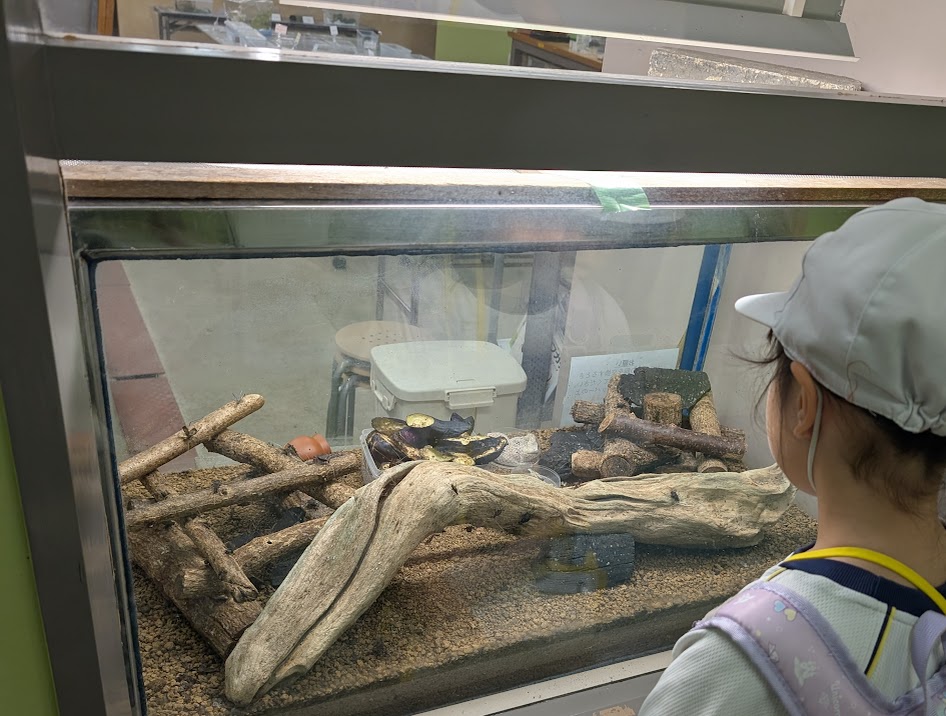 昆虫館のイモリ達とイシガメ君を触って楽しんだり、お気に入りのムシを観察しながらお絵かきして楽しみました。