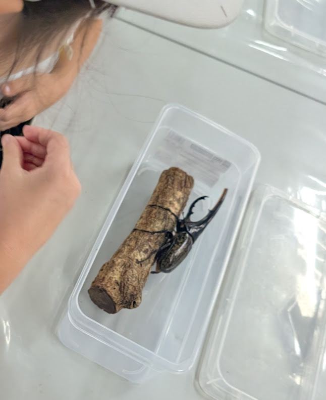 ラボで生きているクワガタやカブトムシにじっくりさわりました。