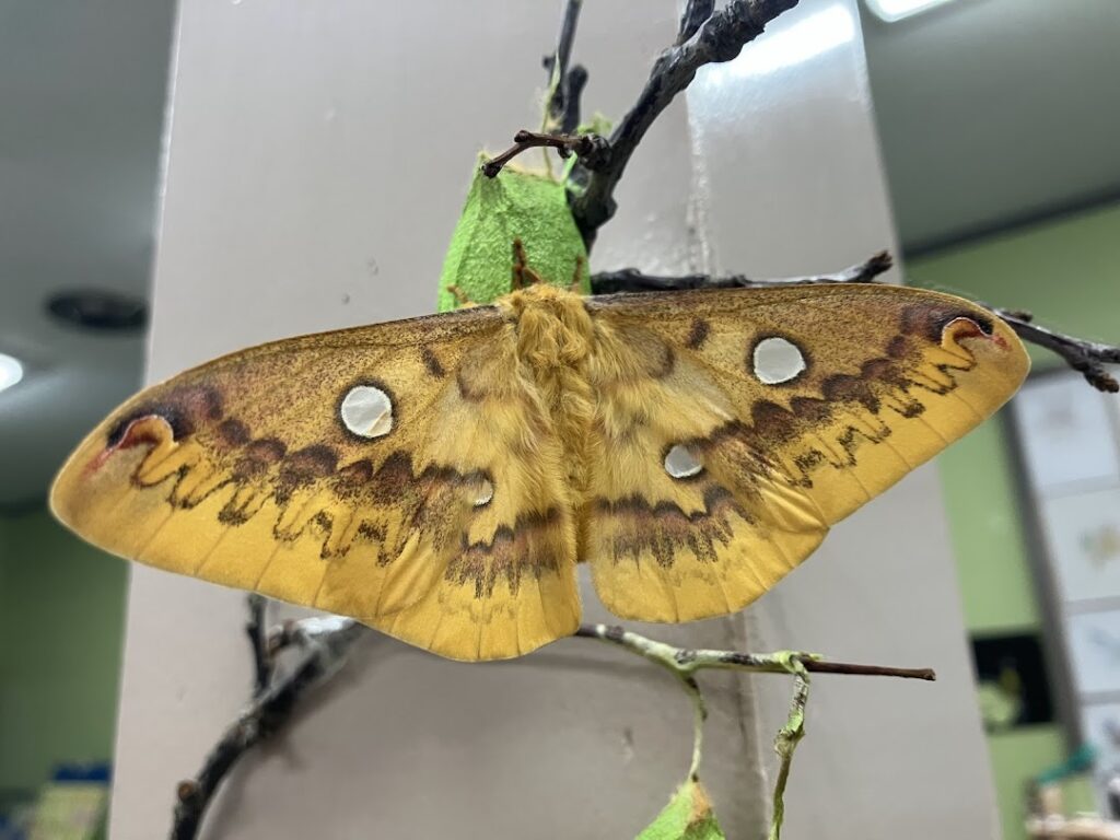 ラボの羽化したウスタビガ♀、顔がかわいいので人気者でした。