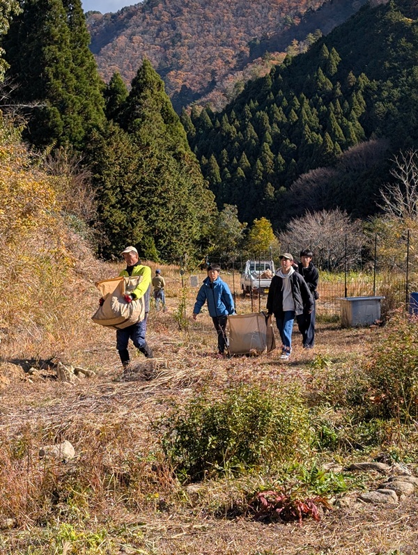 11月25日の雹や雨がしみ込んでいるので、結構重いです。キッズスタッフも頑張ります。