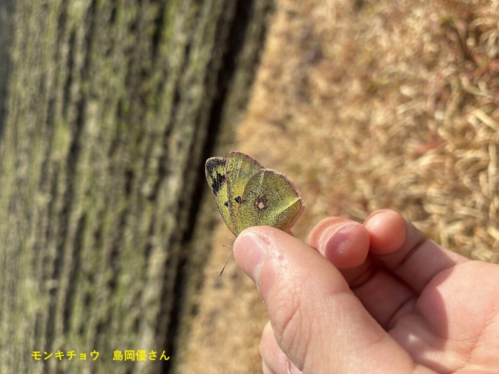 14日には、島岡優さんが三田市でモンキチョウ4を確認されました。初蝶が4頭とは珍しい記録です。この日は暖かでしたから、ほかにキタキチョウやキタテハもいたとのこと。バレンタインにハッピーな出会いでした。