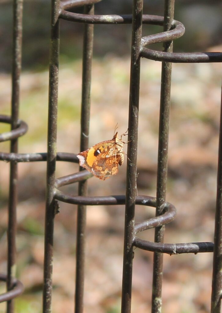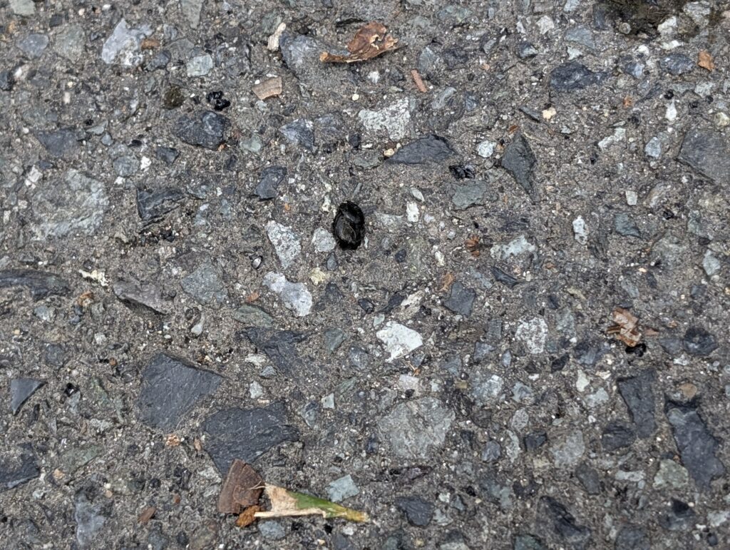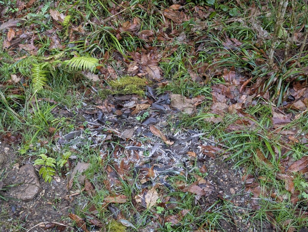 朝準備をしていると、昆虫館の庭にナニモノかのお食事跡がありました。