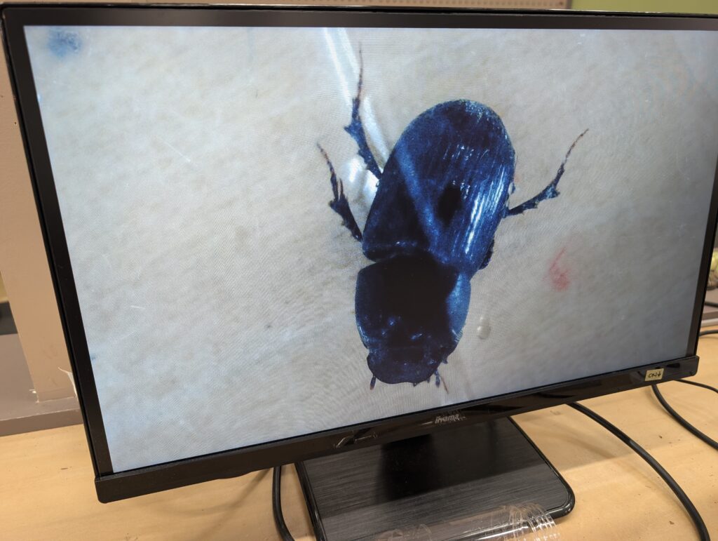 中から小さな虫が出てきました。なんの虫か大きくして見てみます。