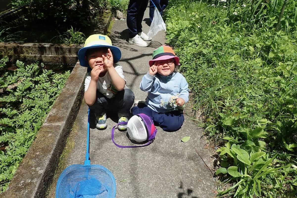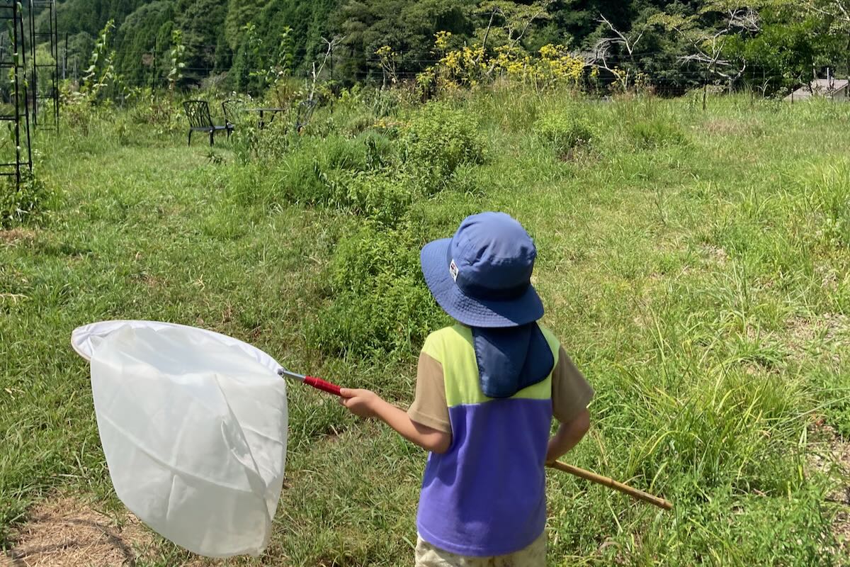 お外へ出て、がっつり虫とりしましょう。虫あみ、虫かごは、自由に使ってください。使ったら元に戻してね。
