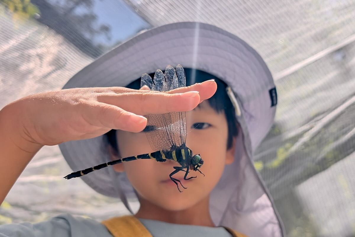 片方だけを持つと、暴れます。翅をもつときは4枚。しっぽを持つと噛まれるよ!