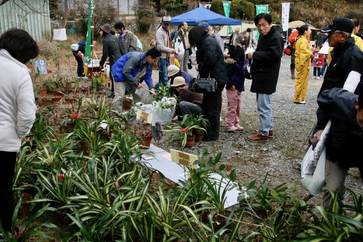 温室の撤去に伴い、温室で栽培されていた植物をみなさんにお分けするイベントを行いました。また、残りの植物は、2008年12月16日、県立三木山森林公園に引き取られました。 200名を越える来場者がありました。スタッフ込みで300名としましょう!実際、24名の正会員、3名の学生スタッフほか、メンバーの方のご出展多数で、スタッフだけでも数十人でした。